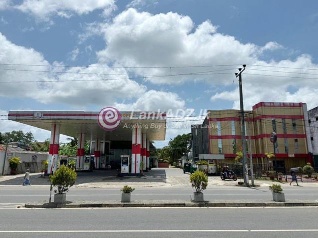 A newly constructed modern fuel filling station, a 3-storey beautiful commercial building, facing the Pradana Road in Matara town, currently used as a wedding hall. The house behind and a complete 1 acre 20 perches of land are for sale.