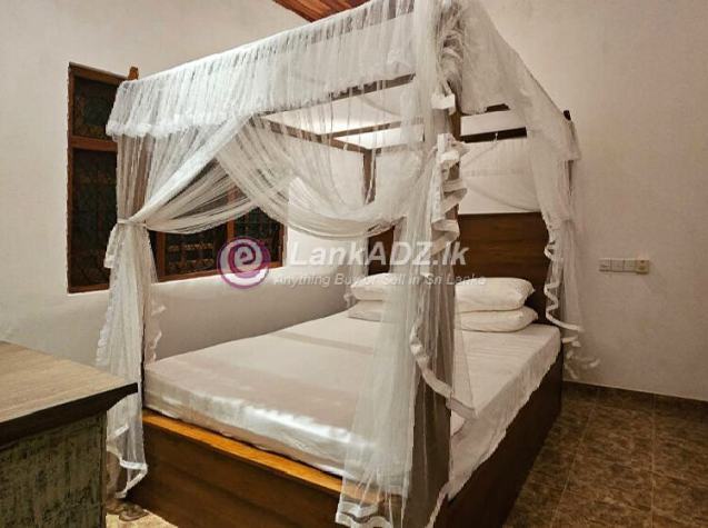 Furniture: Includes 3 teak beds with Celsius bed linen, along with a full set of rustic-style furniture (Sofa, TV stand, Dining table, Book rack, Rocking chair, etc.).