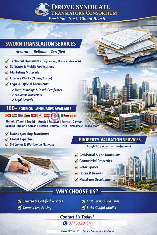 DROVE SYNDICATE - TRANSLATORS CONSORTIUM විසින් විකිණීමට 30 Mar 10:29 am , බත්තරමුල්ල
